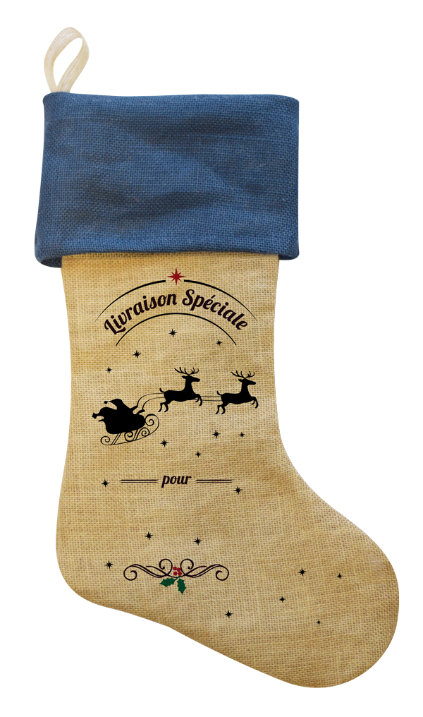 Après la Hotte de Noël personnalisée, voici la chaussette de Noël personnalisée en toile de jute naturelle, cousue main et imprimée en France dans nos ateliers !