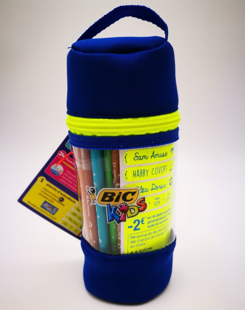 Pour la rentrée, la célèbre marque de stylo BIC a invité les étiquettes A-Qui-S dans sa trousse feutres et crayons de couleur BIC Kids Evolution vendue chez Carrefour !