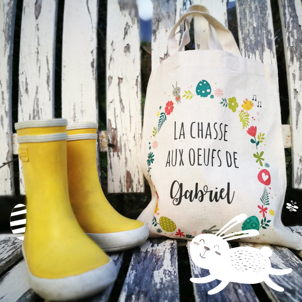 Cette année, avec le soleil qui montre le bout de son nez, nous avions envie de vous présenter notre dernière nouveauté : le Sac de Pâques personnalisé. Un sac 100% coton, 100% mignon 🙂