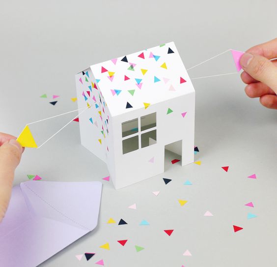 Une carte d’invitation en relief ? C’est possible ! On craque pour cette carte Pop up en forme de petite maison. Pour essayer de la reproduire cliquez sur le lien sous l’image ?